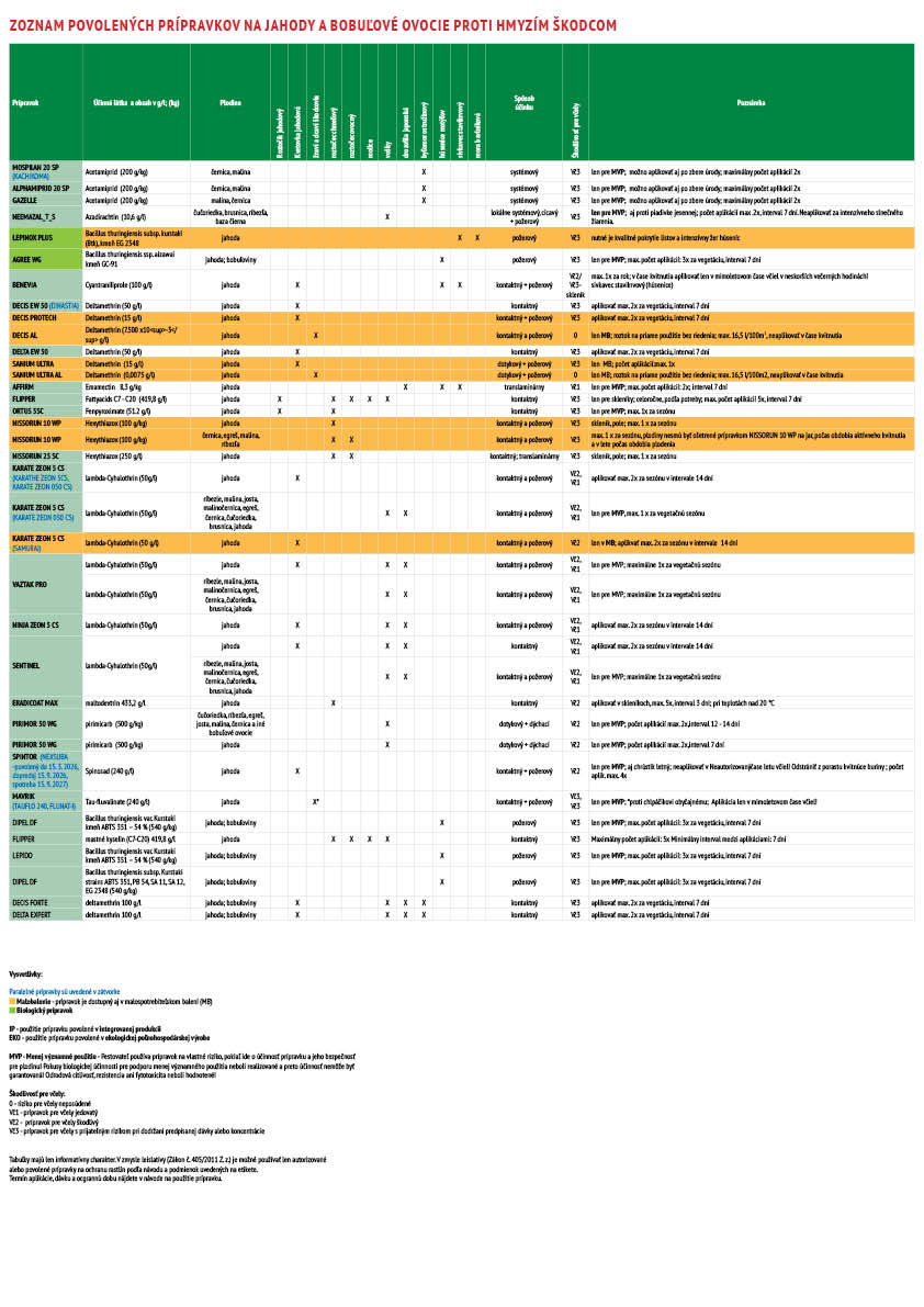 Zoznam povolených prípravkov na jahody a bobuľové ovocie proti hmyzím škodcom
